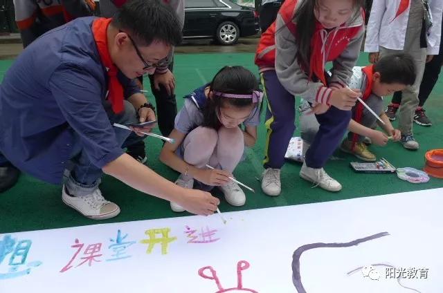 25名小朋友分成五组,虽然天空下着小雨,同学们却热情高涨的将美术创作课搬到了操场上,调色、涂色、构图等等,大家虽分工不同,却必须合作完成,这是连老师的课堂要求。